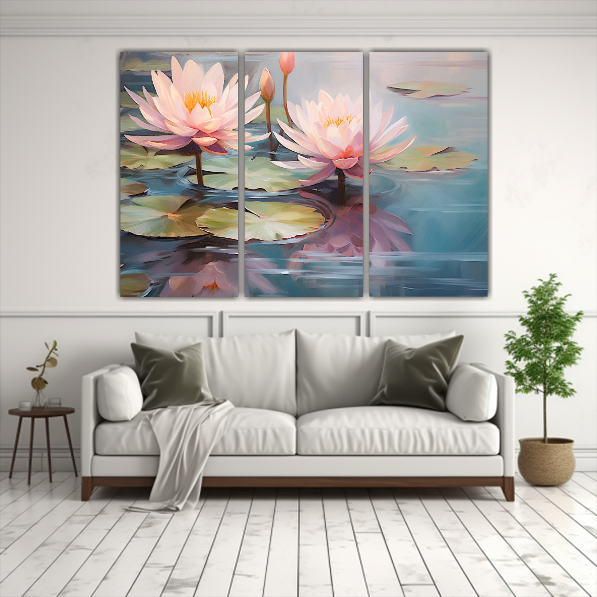 Decora tu hogar con este cuadro de calidad premium Dale un toque de elegancia con los frescos nenúfares rosados en lago Aprovecha los envíos express a regiones Calidad, exclusividad y rapidez en una sola tienda