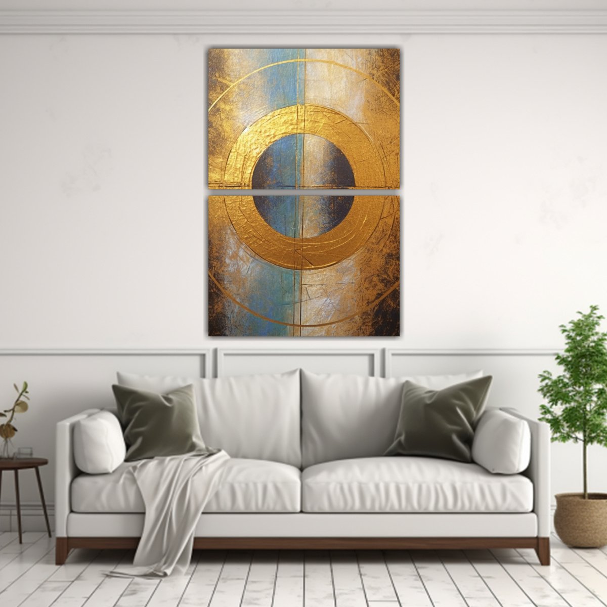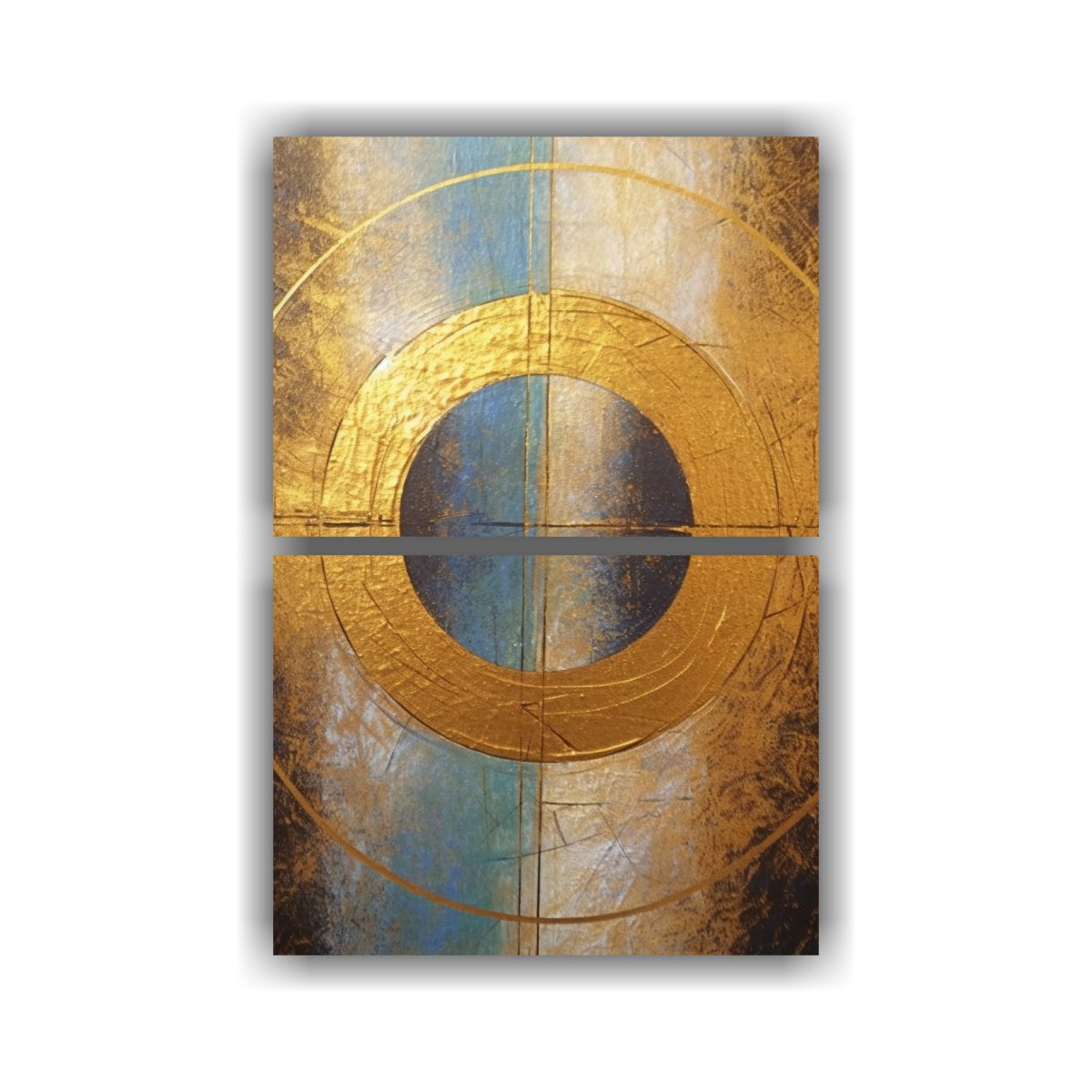 DecoCuadros tiene cuadros decorativos impresos en tela de alta calidad con bastidores de madera El cuadro Pintura al Estilo Estilo óleo Diptico Diseño Detalle Circle in time circles in space luminous combina los colores Gris, Azul Marino grisaceo, Plateado, Amarillo Claro, Coral y Chocolate Diseño exclusivo de nuestra tienda