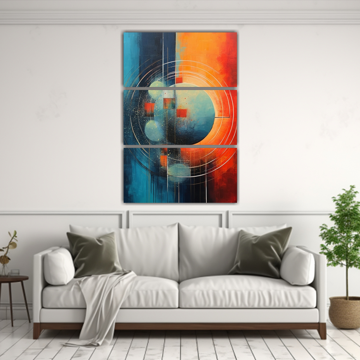 Este cuadro Pintura al Estilo Estilo óleo en bastidor Tres Telas en Equilibrio Moderno es perfecto para decorar una sala de estar moderna Puedes colocarlo sobre un sofá blanco para crear un contraste elegante y resaltar los colores vibrantes del cuadro También puedes combinarlo con cojines en tonos grises y turquesas para crear una paleta de colores armoniosa ¡Atrévete a añadir un toque de arte contemporáneo a tu hogar con este impresionante cuadro!