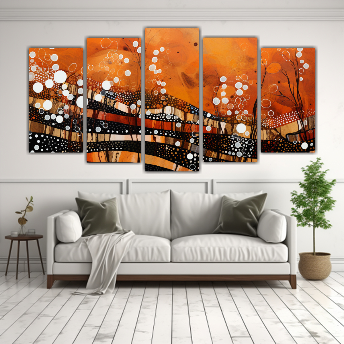 Compra ahora este cuadro Pop Art Abstracto con composición de arte pop abstracto inspirada en el arte aborigen Colores: Coral, Negro, Beige, Chocolate, Plateado, Gris Entrega gratis en Santiago Envíos express a regiones