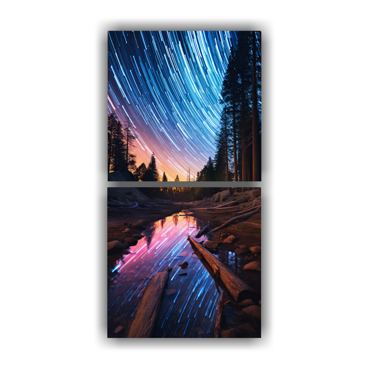 Pintura Al óleo Visión De La Imagen De Dos Lienzos De La Belleza Efímera De Una Estela De Estrella Fugaz