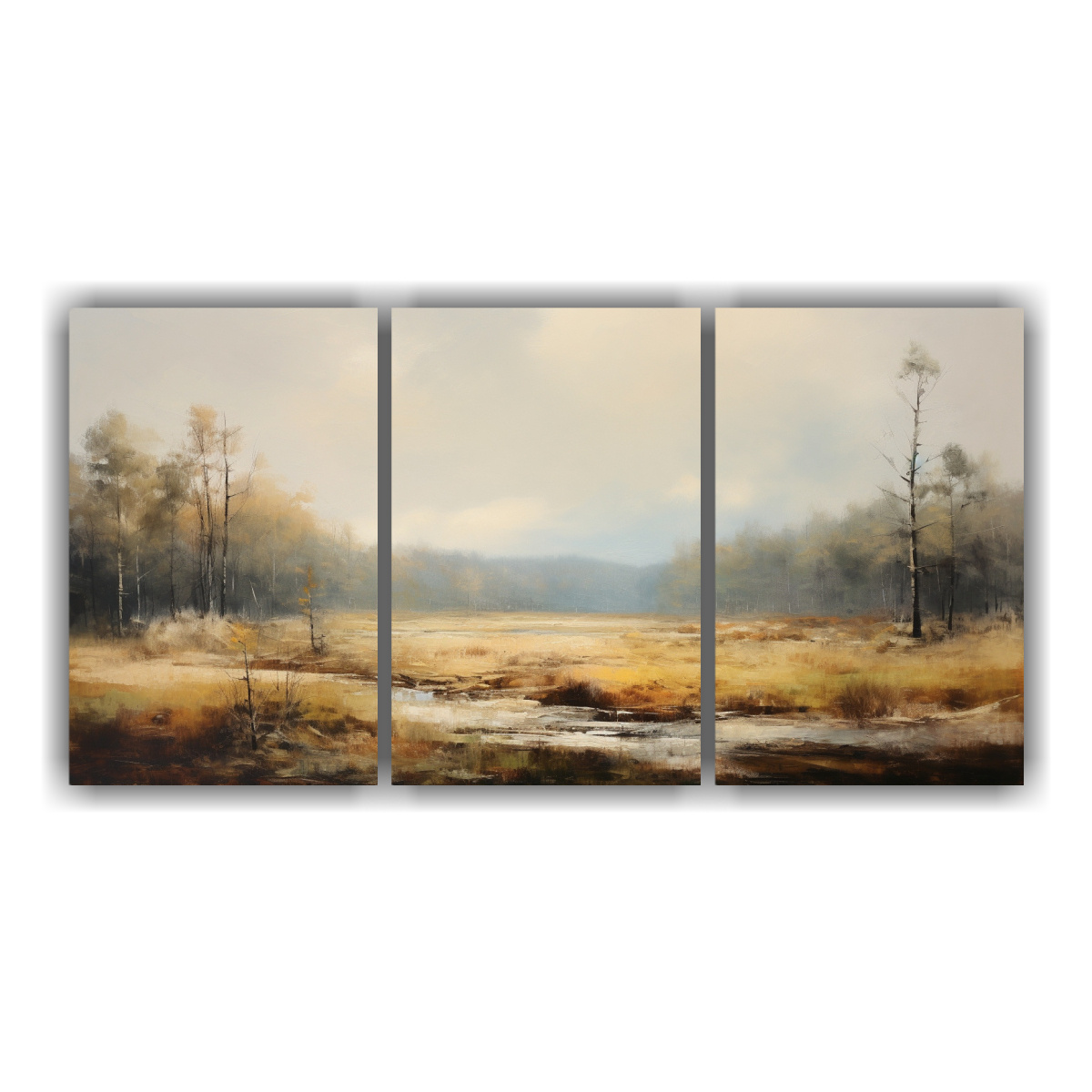 DecoCuadros presenta un set de 3 obras maestras impresas en lienzo de alta calidad Estas pinturas al estilo Estilo óleo y cera fría destacan por su dinamismo y juego de luces Los colores Azul Marino grisaceo, Plateado, Dorado, Gris y Chocolate conforman una combinación sofisticada y elegante Nuestros cuadros se destacan por su calidad y precios económicos, siendo una opción accesible para decorar cualquier espacio Realizamos entregas rápidas y gratuitas en Santiago y envíos express a regiones