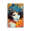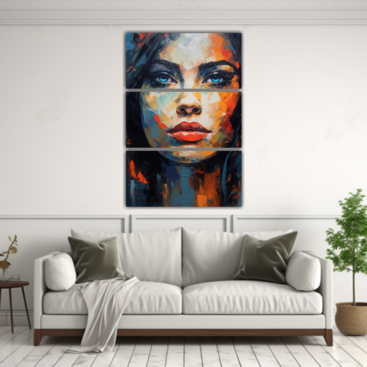 Este cuadro de mujer americana atractiva en lienzo sería perfecto para decorar una sala de estar o dormitorio moderno Combina los colores plateado, azul marino grisaceo, chocolate, carmesí, coral, gris y verde azulado con muebles y accesorios en tonos neutros para crear un ambiente elegante y sofisticado