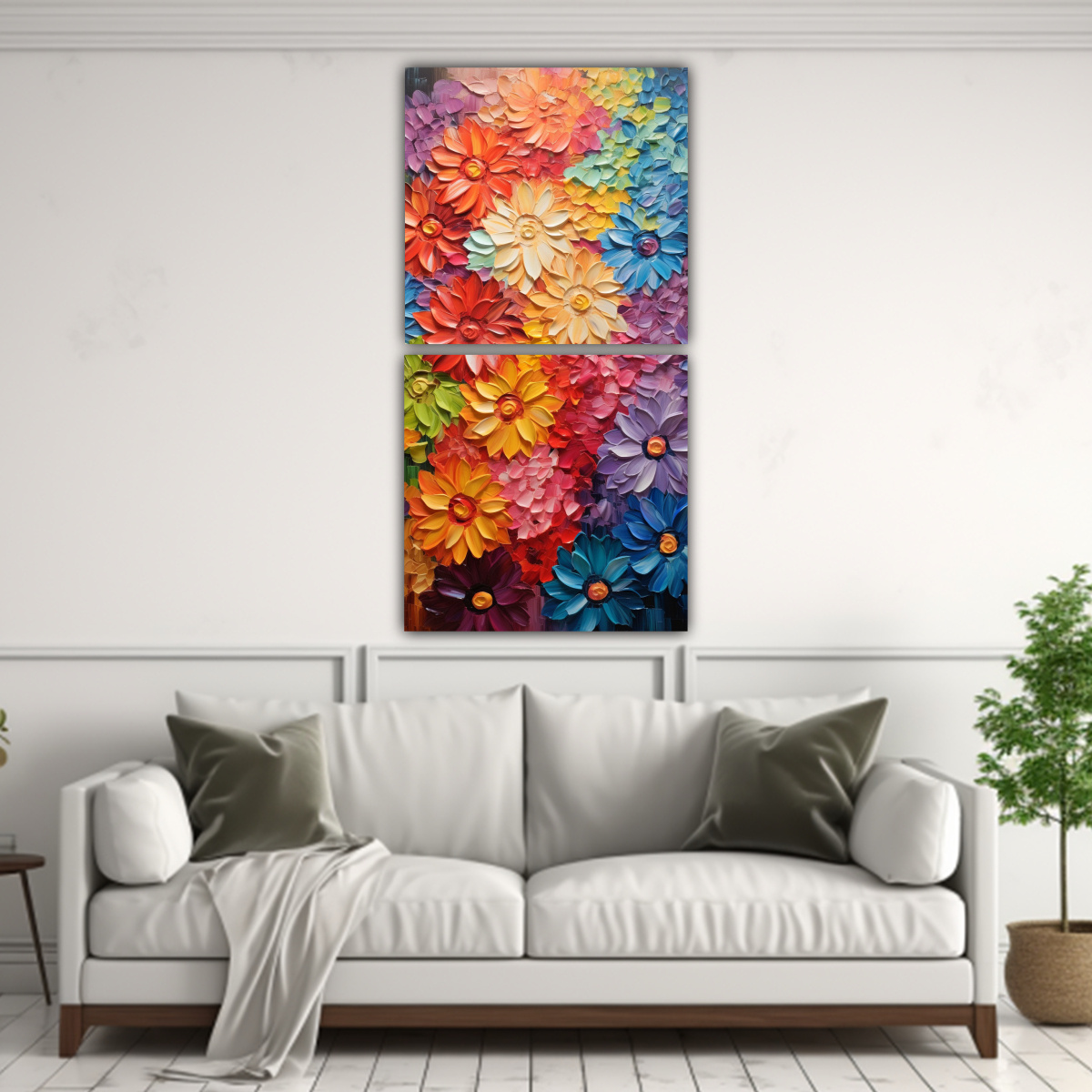 Pintura Arcoiris De Flores En Lienzo Al Estilo Lluvia