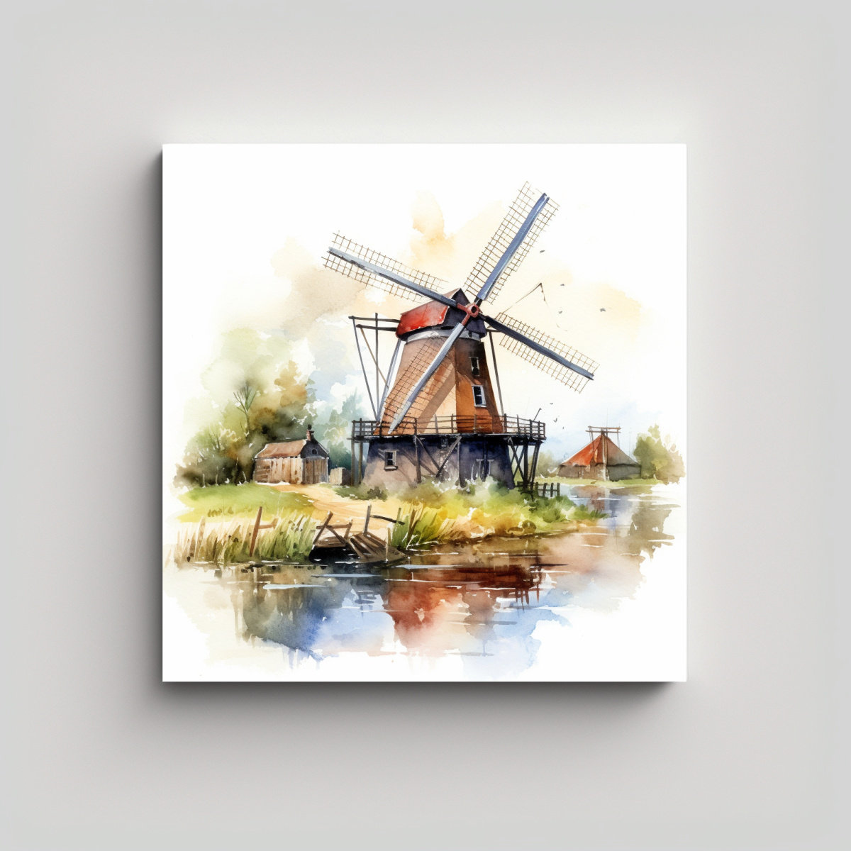 El cuadro ‘Sannne aquarel Dutch windmill on riverside white background’ es ideal para aportar un toque de elegancia y nostalgia a tu salón o estudio Combina perfectamente en una pared junto a muebles de estilo clásico o moderno, creando un ambiente acogedor y sofisticado