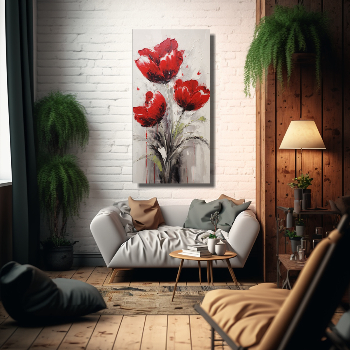 Este cuadro de Tulipanes Rojos en lienzo estilo r quedará perfecto en la sala de estar o en el comedor Combínalo con muebles de tonos neutros y accesorios en los colores plateado, gris y coral para crear una atmósfera moderna y sofisticada