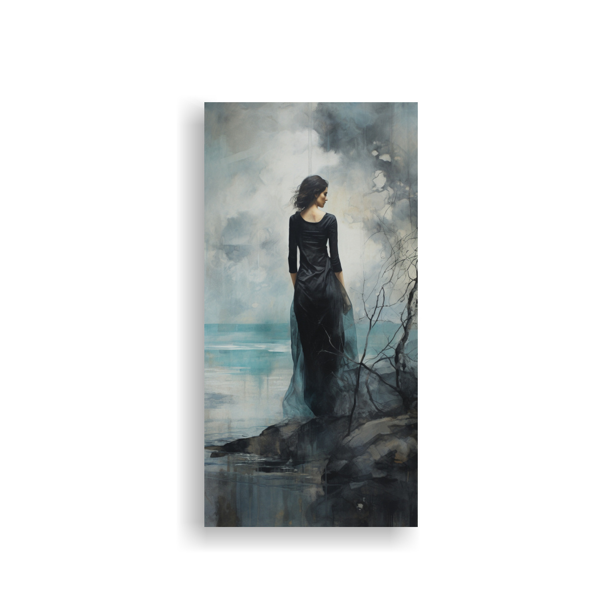 Pintura Arte Tonos Enigmáticos En Negro, Turquesa Y Plata