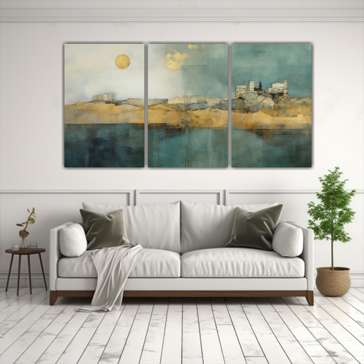 Este cuadro Pintura Artes Composición Vida en Carne Teal y Oro se verá espectacular en tu sala de estar Colócalo sobre un sofá de tonos neutros, como el gris o el beige, para crear un contraste elegante Además, puedes añadir cojines y cortinas en tonos dorados y plateados para resaltar los colores del cuadro ¡Crea un ambiente sofisticado y moderno en tu hogar con este cuadro exclusivo de DecoCuadros!