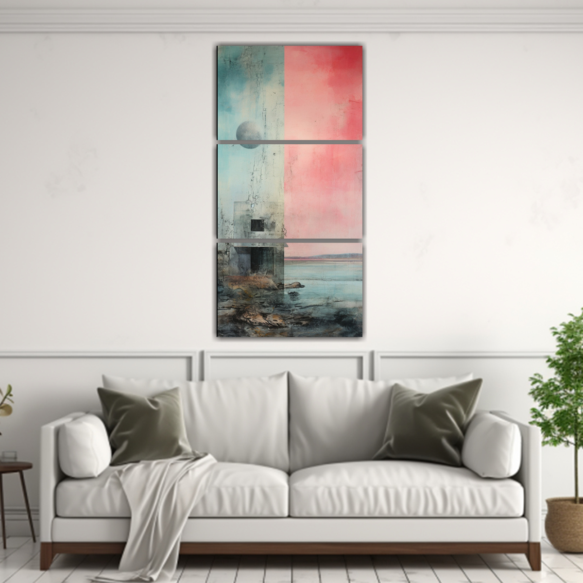 El cuadro artesanal rosa, turquesa y plata con 3 composiciones de colores es perfecto para agregar un toque de elegancia y modernidad a tu hogar u oficina Con diseños exclusivos y una impresión de alta calidad en tela con bastidores de madera, este cuadro es la elección ideal para aquellos que buscan decorar con estilo Los colores azul marino grisaceo, plateado, gris, carmesí, coral y dorado se combinan armoniosamente, creando una obra de arte única y llamativa Además, en DecoCuadros ofrecemos los precios más baratos del mercado y las entregas más rápidas, totalmente gratis en Santiago ¿Qué esperas para comprar este hermoso cuadro?
