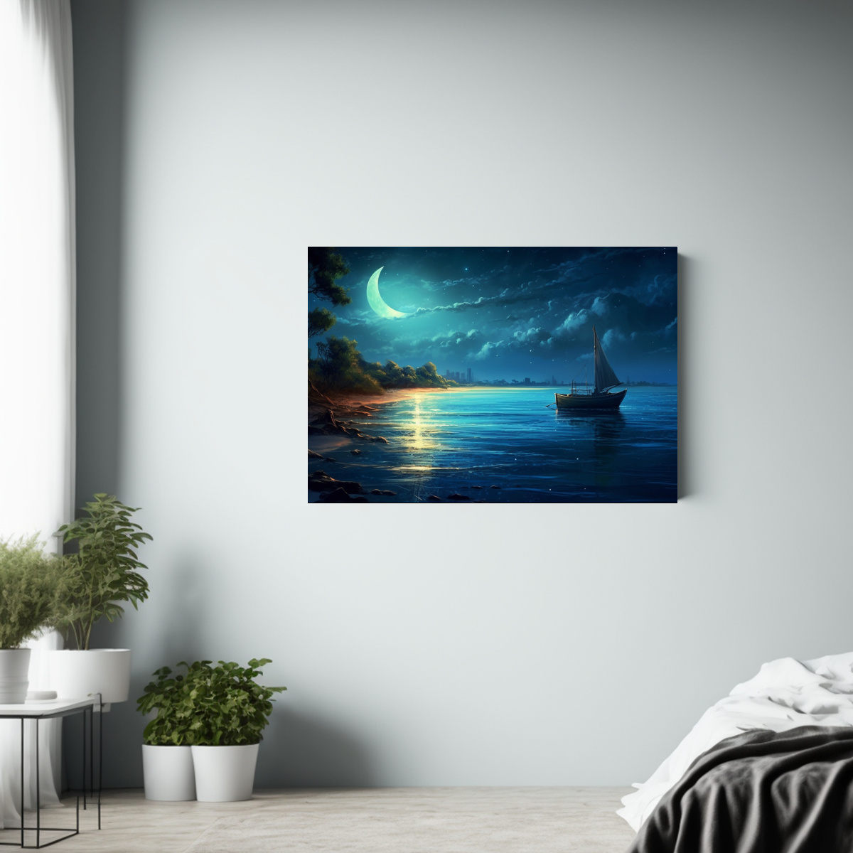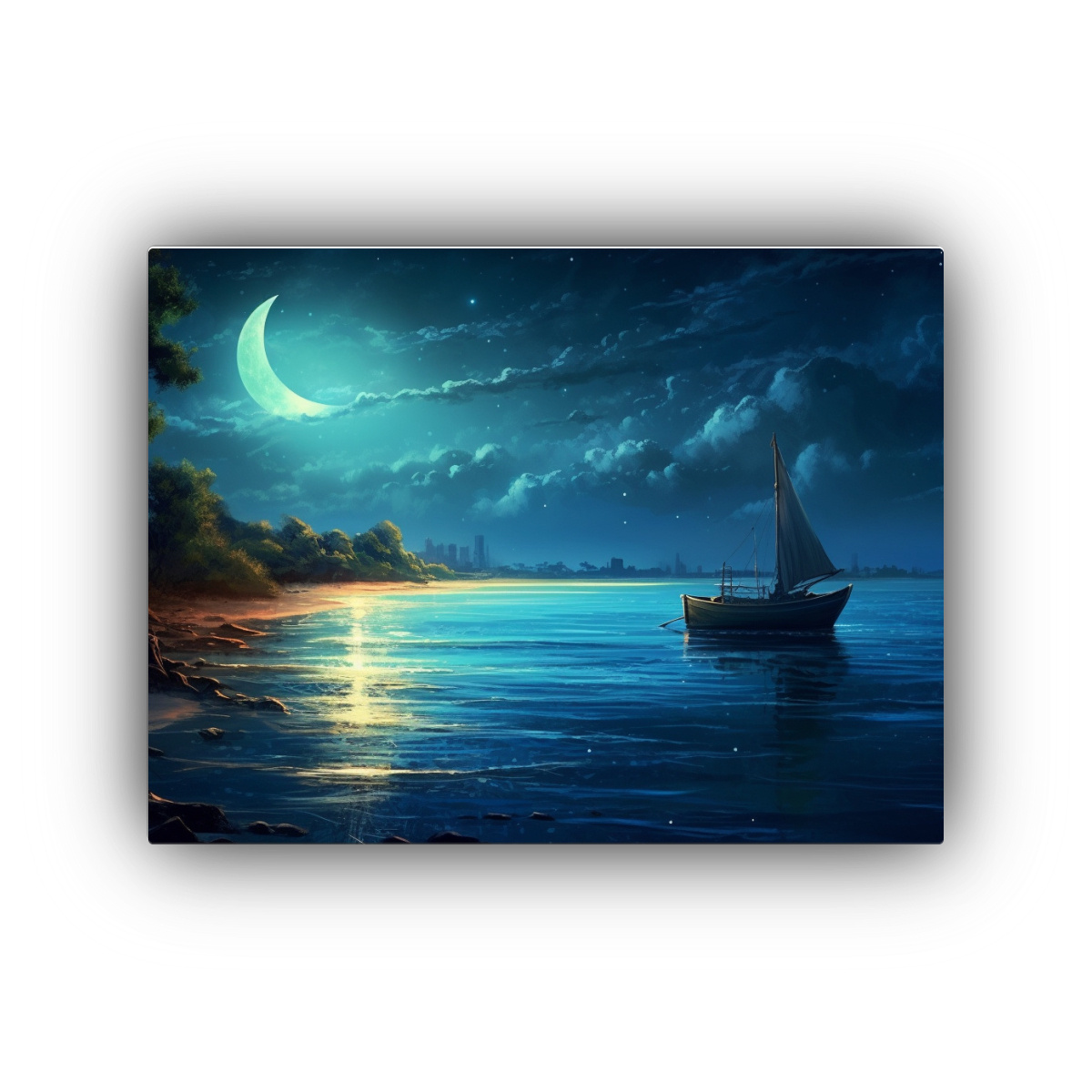 Pintura Azul De Luna Sobre El Agua En Estilo Trascendental, Canva Forma Alegría.