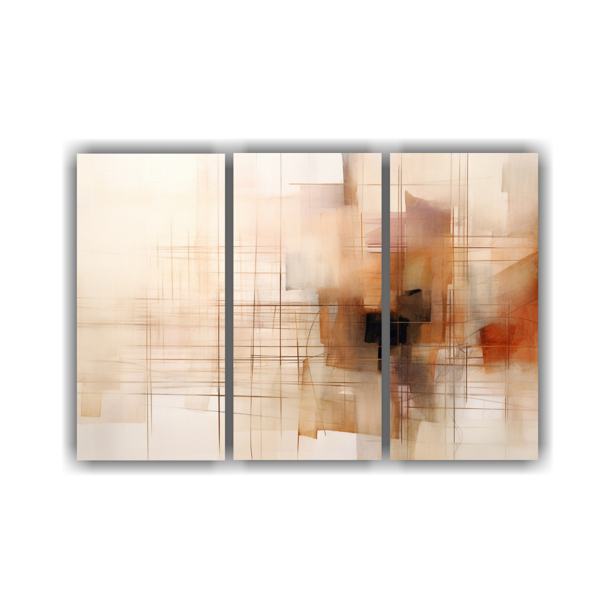 Pintura Beige Y Blanco Con Dos Líneas: Set 3 Artes Calidos Ambiente