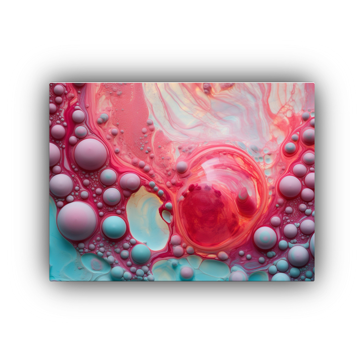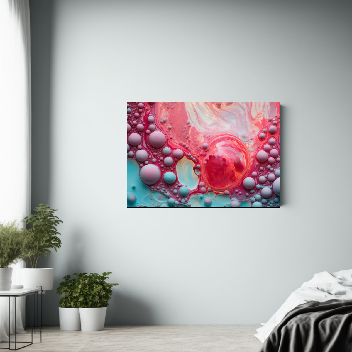 Este cuadro burbujeante rosa se vería espectacular en la sala de estar, creando un ambiente relajante y elegante Combínalo con muebles en tonos neutros para resaltar sus colores vibrantes y agrega cojines en tonos coral y turquesa para un look moderno y sofisticado