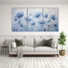 Este Set de 3 cuadros Street Art a blue POPPIES es ideal para decorar una sala de estar moderna Colócalos en una pared amplia y combínalos con muebles en tonos plateados, azul marino grisáceo, gris y beige para lograr un ambiente sofisticado y elegante
