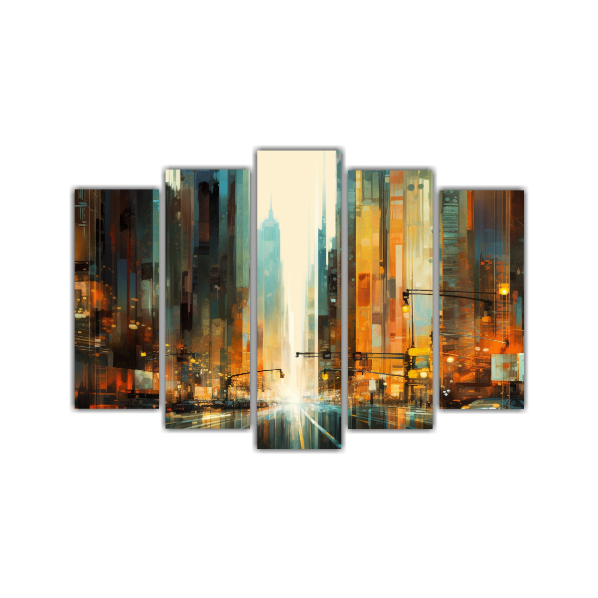 Pintura Ciudad Con Altos Edificios Para Decoración.