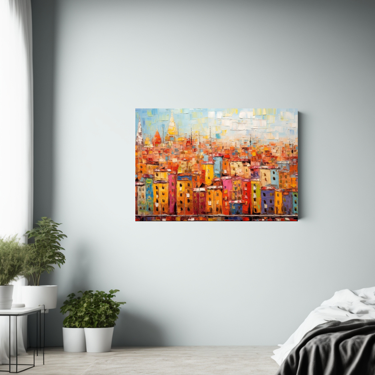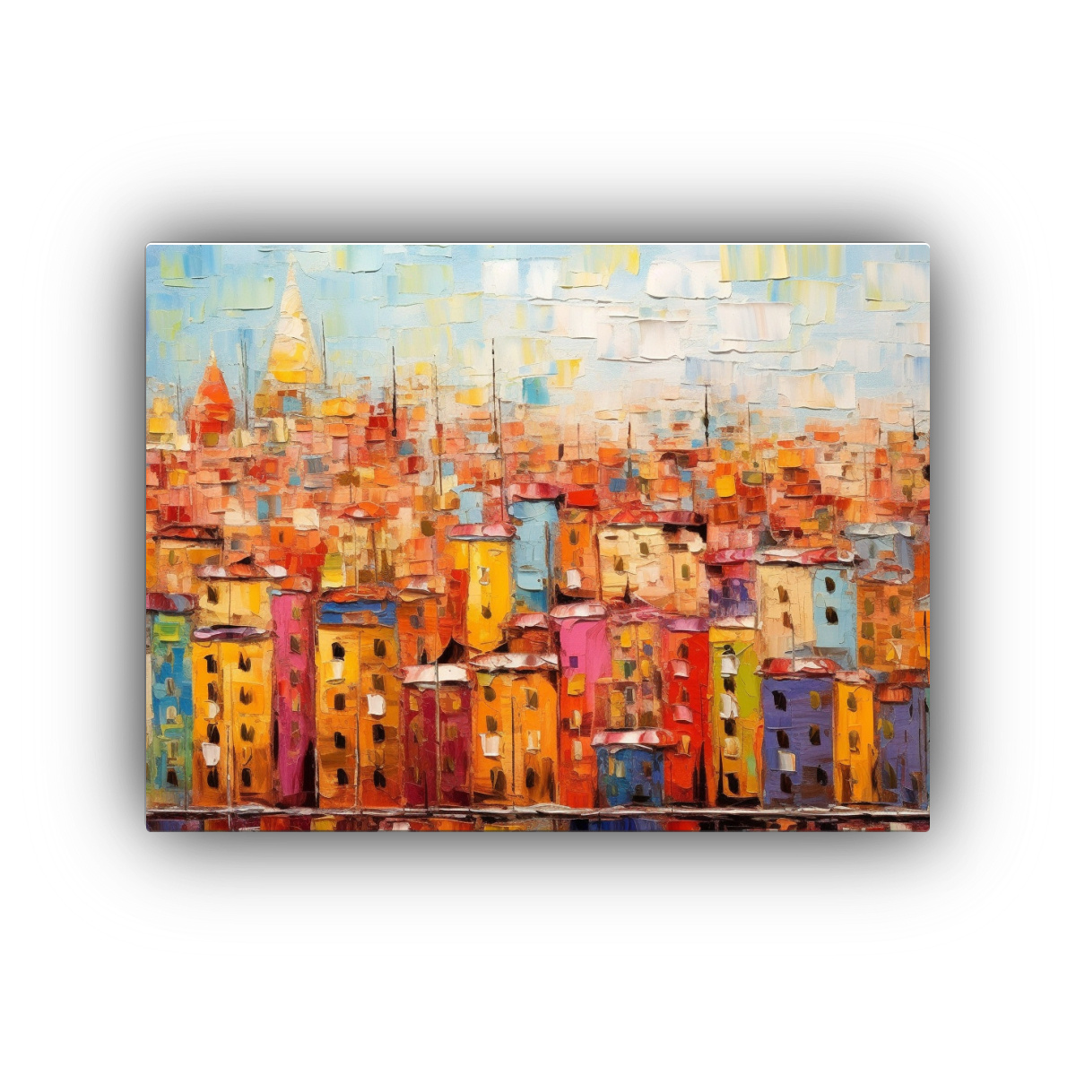 Pintura Ciudad Paisaje Moderno Textura Gruesa Vibrante Y Colorida