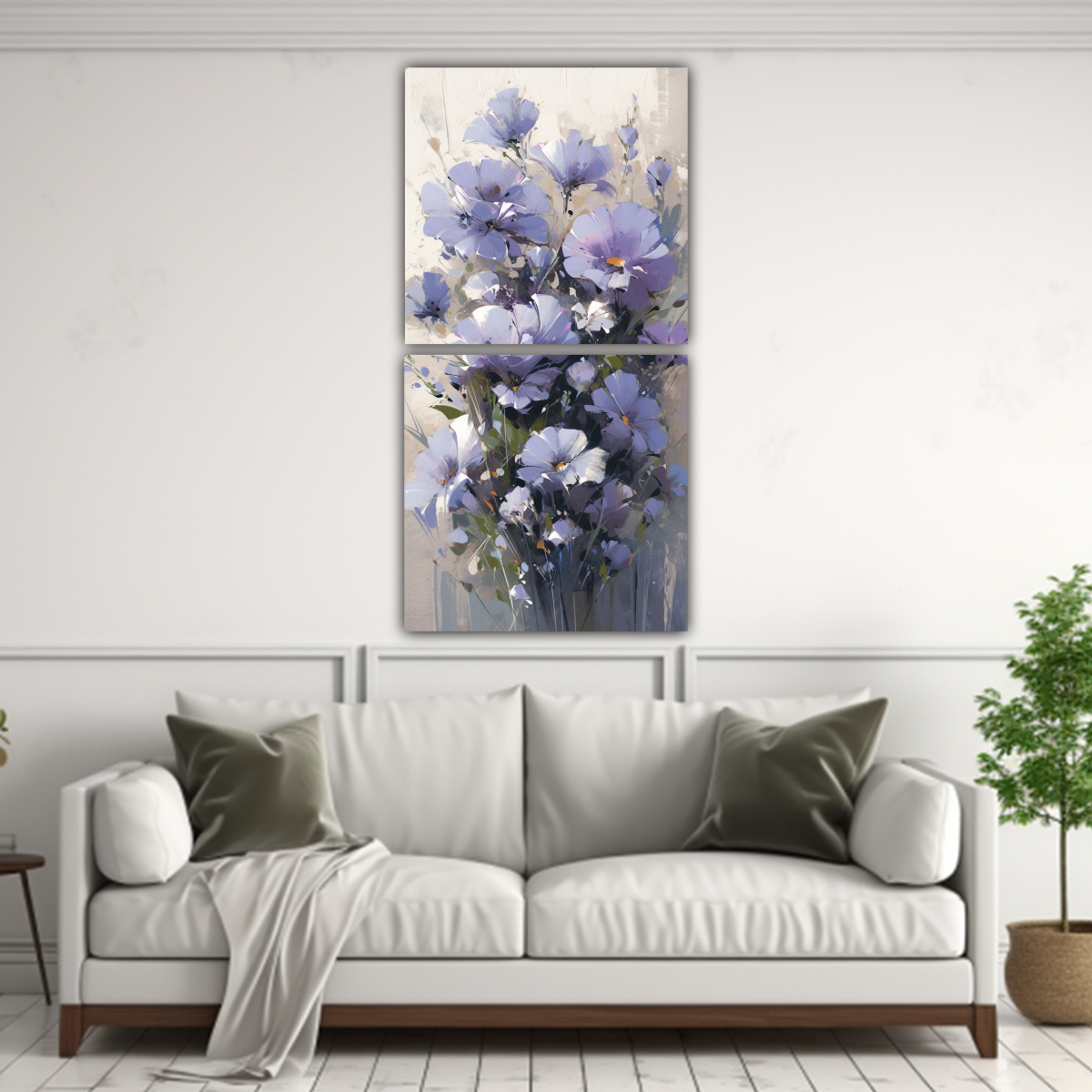 El cuadro de flores púrpuras y plateadas de DecoCuadros es ideal para añadir un toque de elegancia a tus espacios Su diseño exclusivo y los colores plateado, azul marino grisaceo, gris y lila le darán un aire sofisticado a cualquier habitación Además, ofrecemos entregas rápidas y gratuitas en Santiago y envíos express a regiones