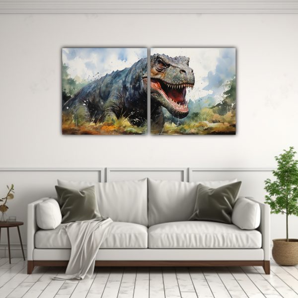 Pintura Colorida Estilo Acuarela Iguanodon Mural Horizontal 2