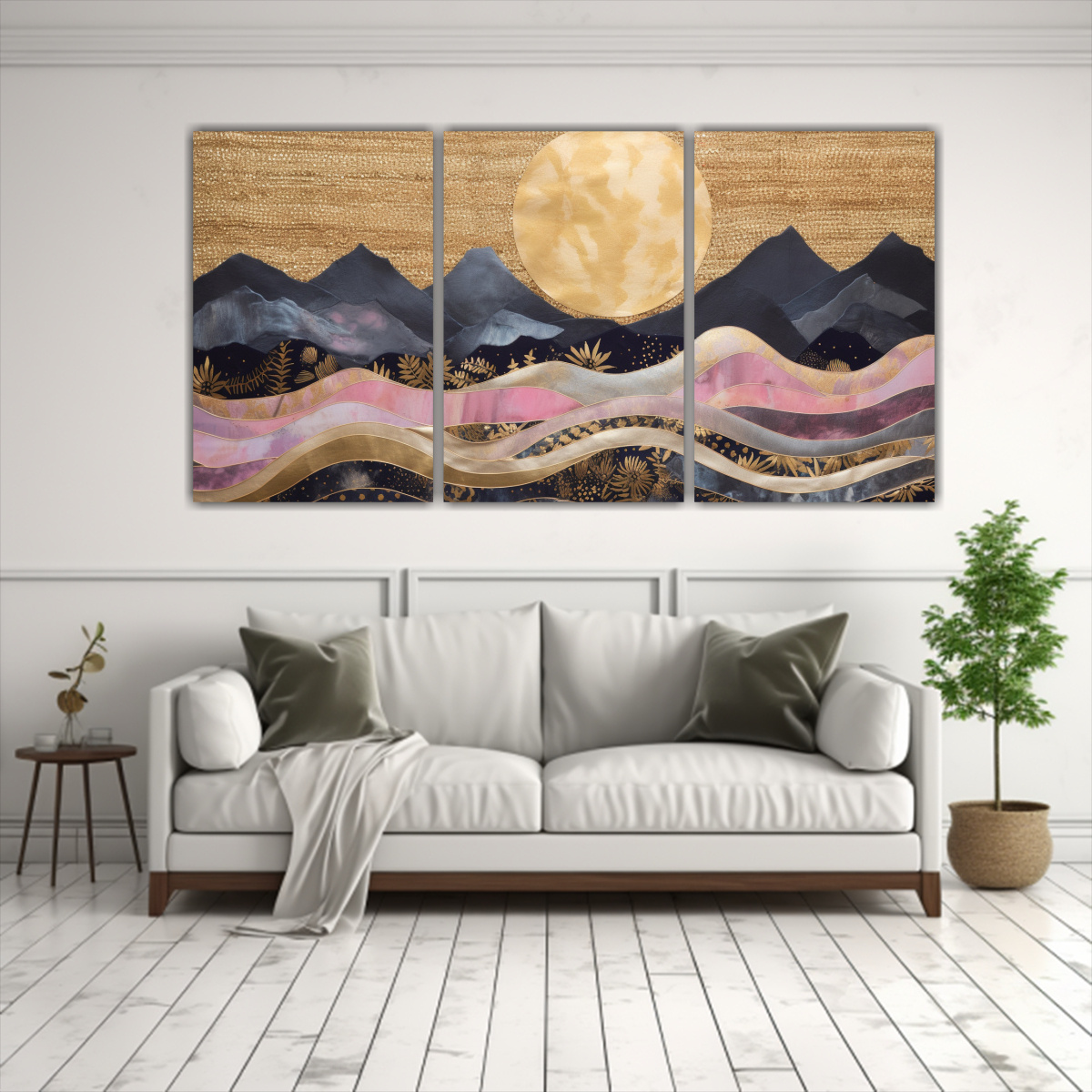 Decora tu hogar con el cuadro Pintura con luna cerca de las montañas Con su diseño exclusivo, alta calidad y precios económicos, no encontrarás nada mejor que en DecoCuadros Disponible en colores Plateado, Azul Marino grisaceo, Gris, Beige y Chocolate
