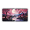 Pintura Con Luna Cerca De Montañas En Bastidor Temático Para Cuarto