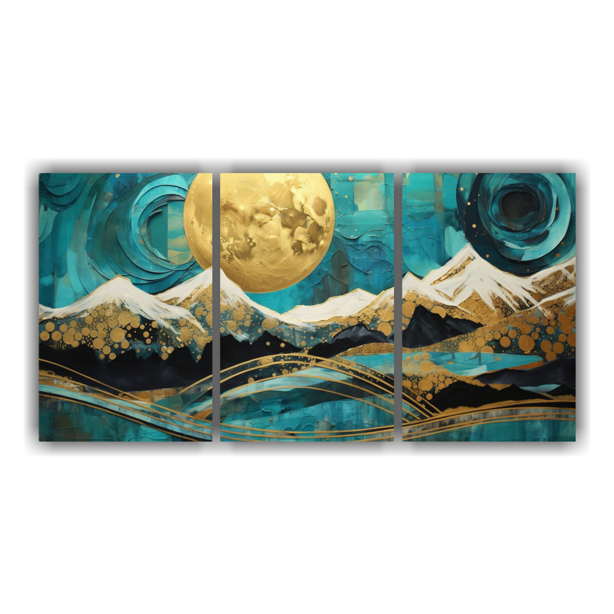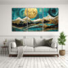 Decora tu hogar con la hermosa pintura con luna y montañas al atardecer de DecoCuadros Nuestros cuadros impresos en tela de alta calidad con bastidores de madera están disponibles en colores como el coral, azul marino grisaceo, gris, turquesa y más Aprovecha nuestros precios económicos y entrega rápida en Santiago ¡Compra ahora y dale vida a tus paredes!