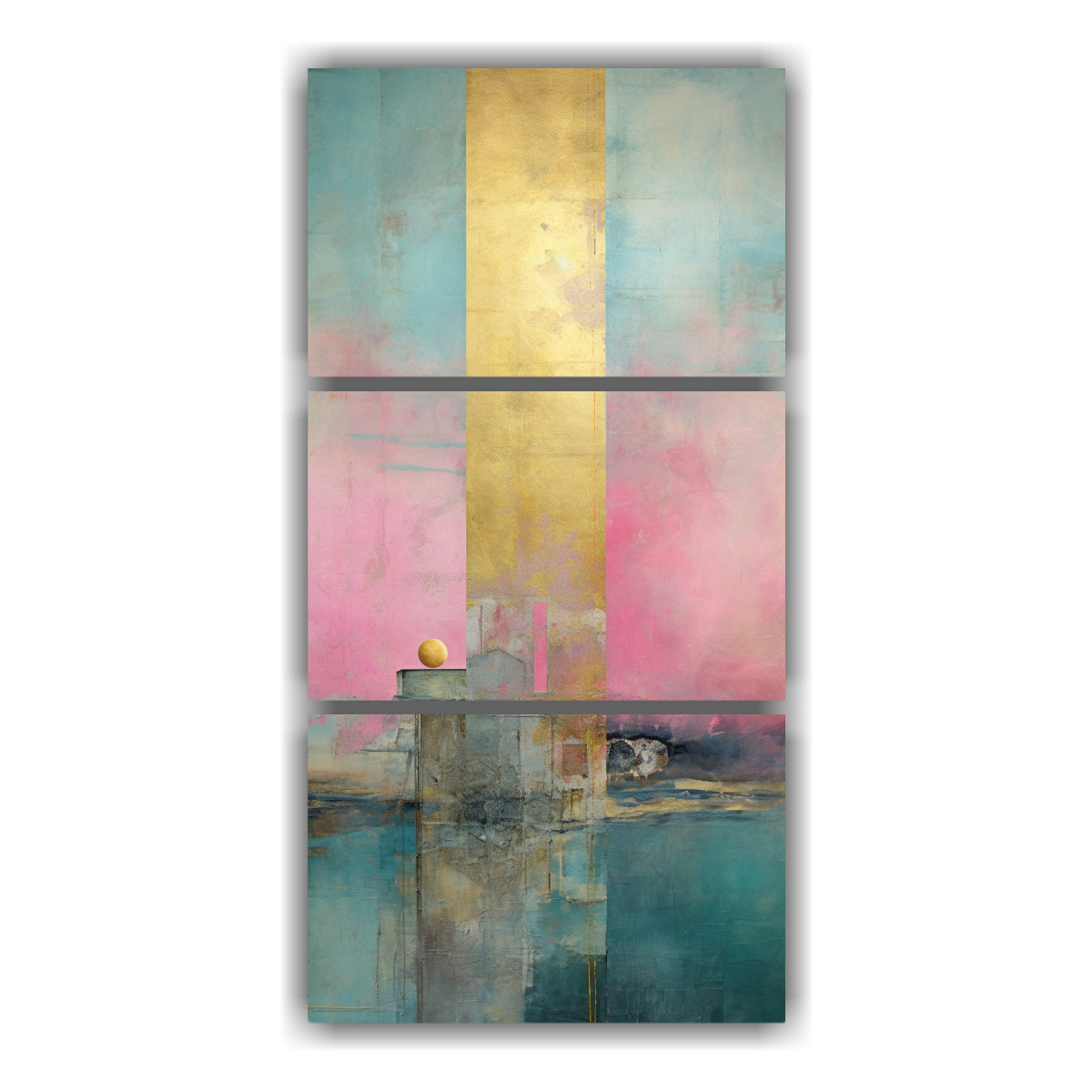 Este cuadro de acuarela rosa, turquesa y dorado sería perfecto para decorar un salón o sala de estar Combínalo con muebles en tonos neutros para resaltar su belleza y crear un ambiente elegante y moderno