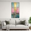 Pintura Con Temática De Inspiración En Lienzo Con Acuarela Rosa, Turquesa Y Dorado.