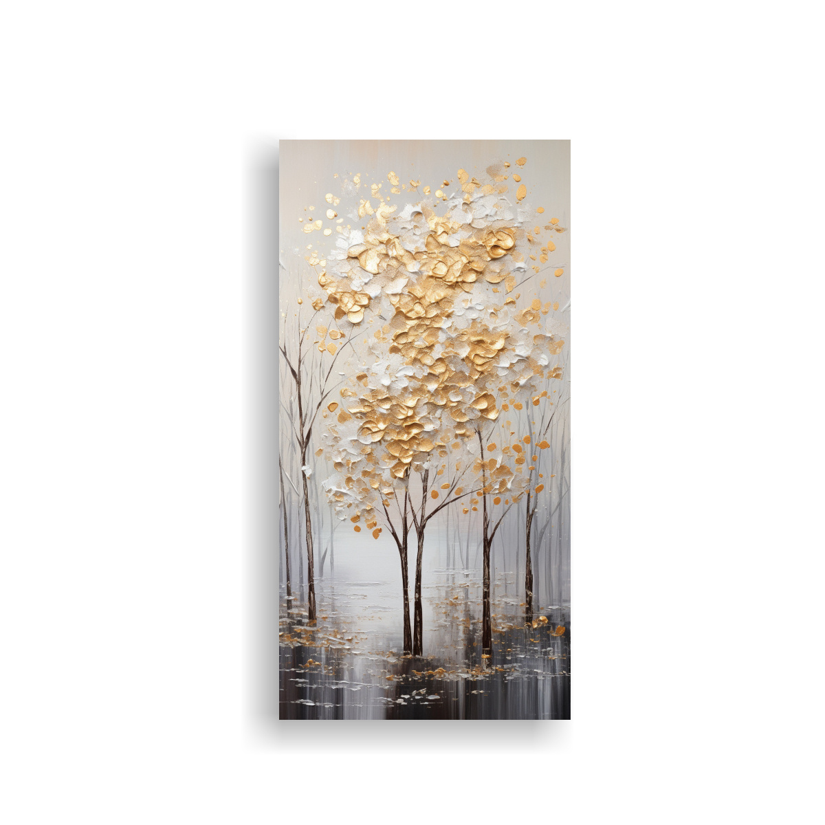 Este cuadro sería ideal para decorar el salón principal de tu hogar, dándole un toque de sofisticación y distinción Puedes colocarlo sobre una pared de color beige o gris claro para resaltar aún más sus tonos dorados y plateados Además, combinaría muy bien con muebles de tonos neutros y accesorios en tonos azul marino o coral, creando un ambiente elegante y moderno