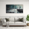 Este cuadro minimalista en acuarela negro, verde azulado y plateado es perfecto para colocar en el salón o en la sala de estar Combina muy bien con muebles modernos y colores neutros como blanco o gris