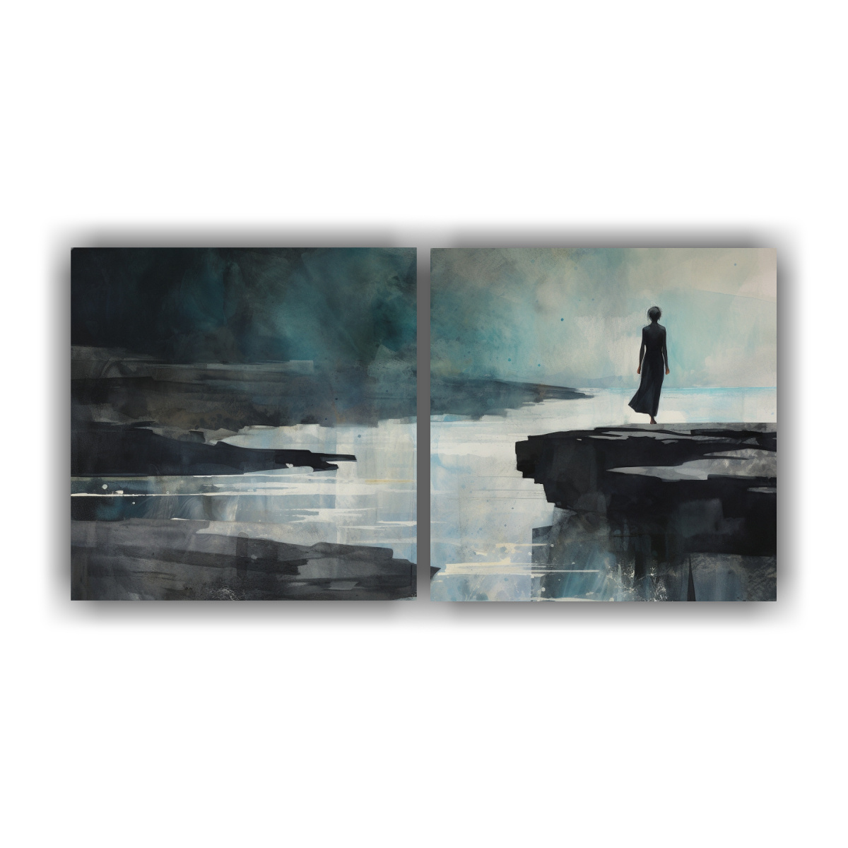 DecoCuadros tiene para ti el cuadro ‘Pintura conceptual minimalista en acuarela negro, verde azulado y plateado’ Calidad y diseño exclusivo al mejor precio