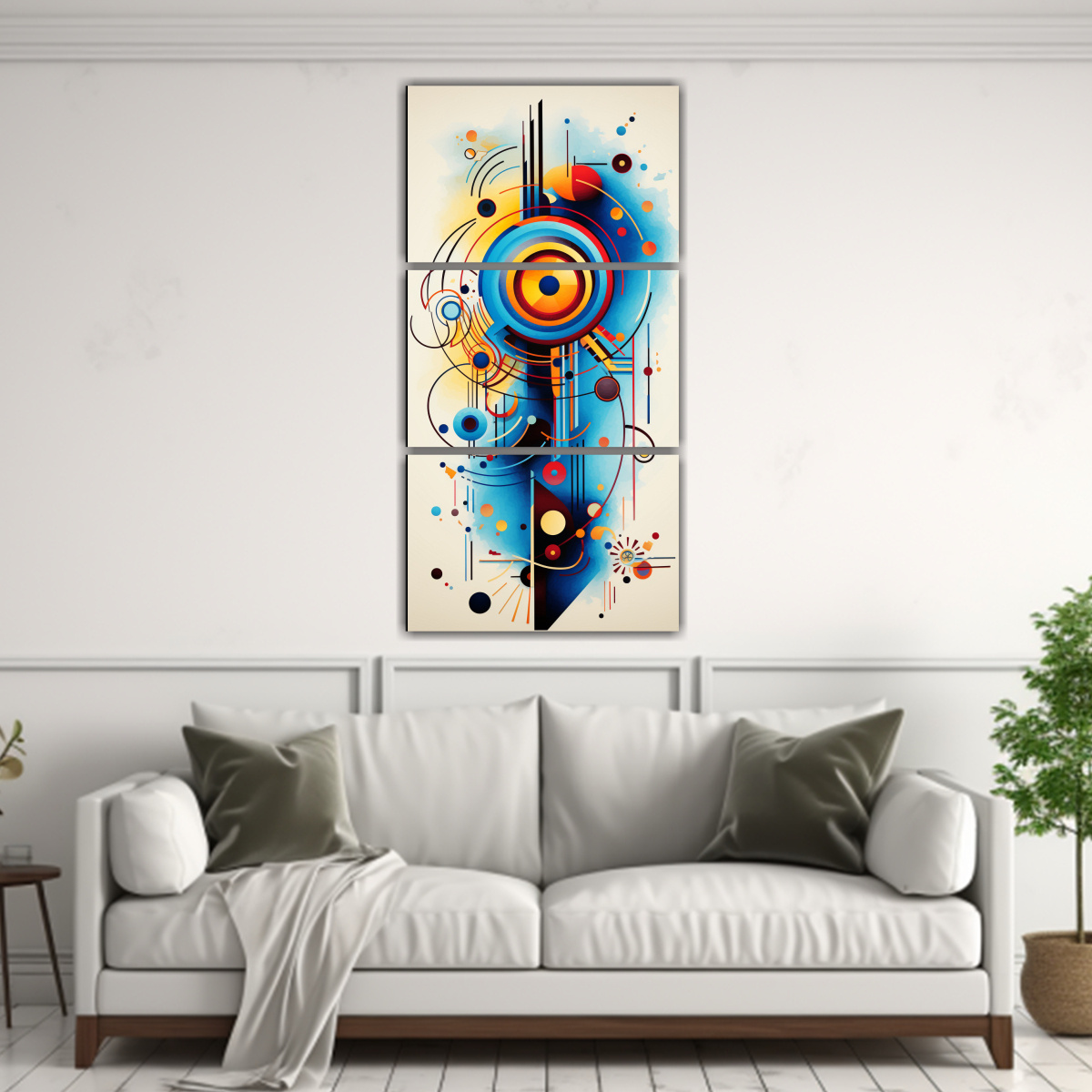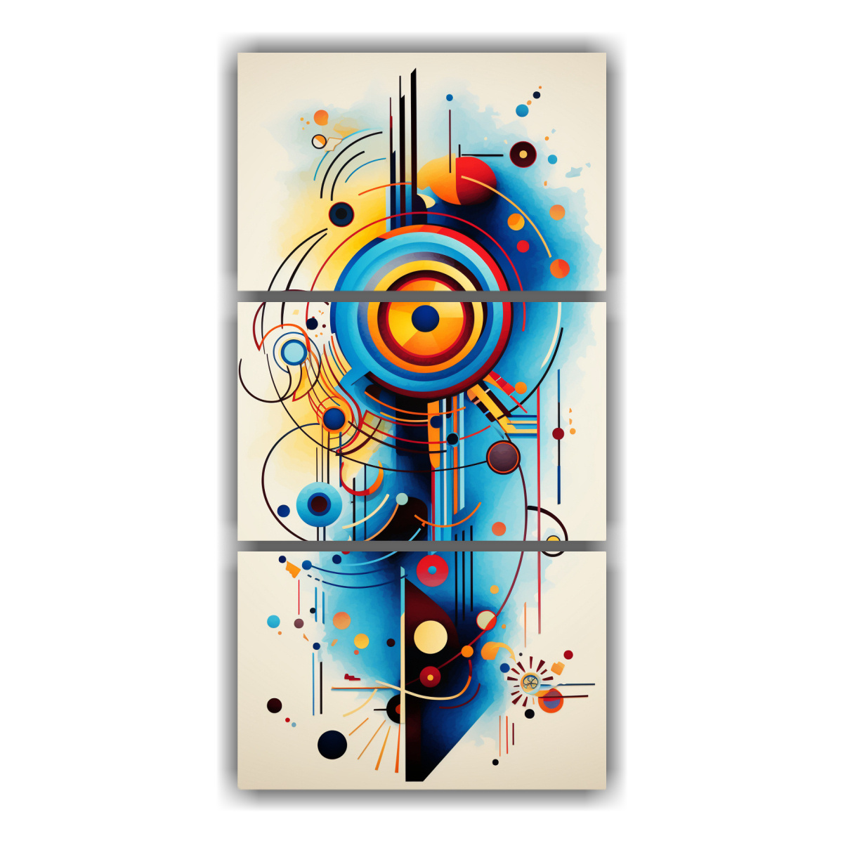 Este cuadro luminoso estilo Kandinsky es perfecto para realzar la decoración de tu sala de estar Colócalo sobre un sofá de tonos neutros para crear un contraste llamativo y moderno También puedes combinarlo con cojines en tonos cálidos para darle un toque acogedor y sofisticado