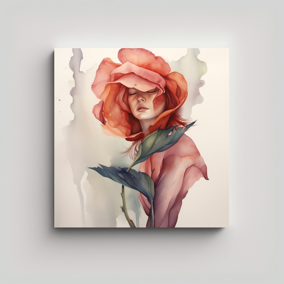 Pintura Corporal De Rosa Pétalos Exclusiva Acuarela Y Tallo