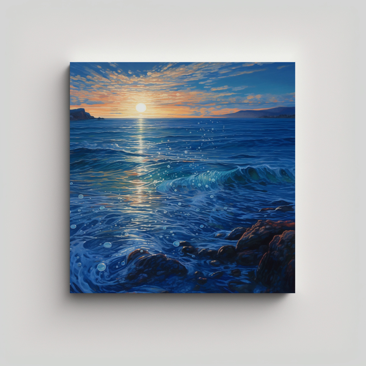 Pintura Creativa Azul Brillante Mar Sobre Bastidor De Madera