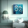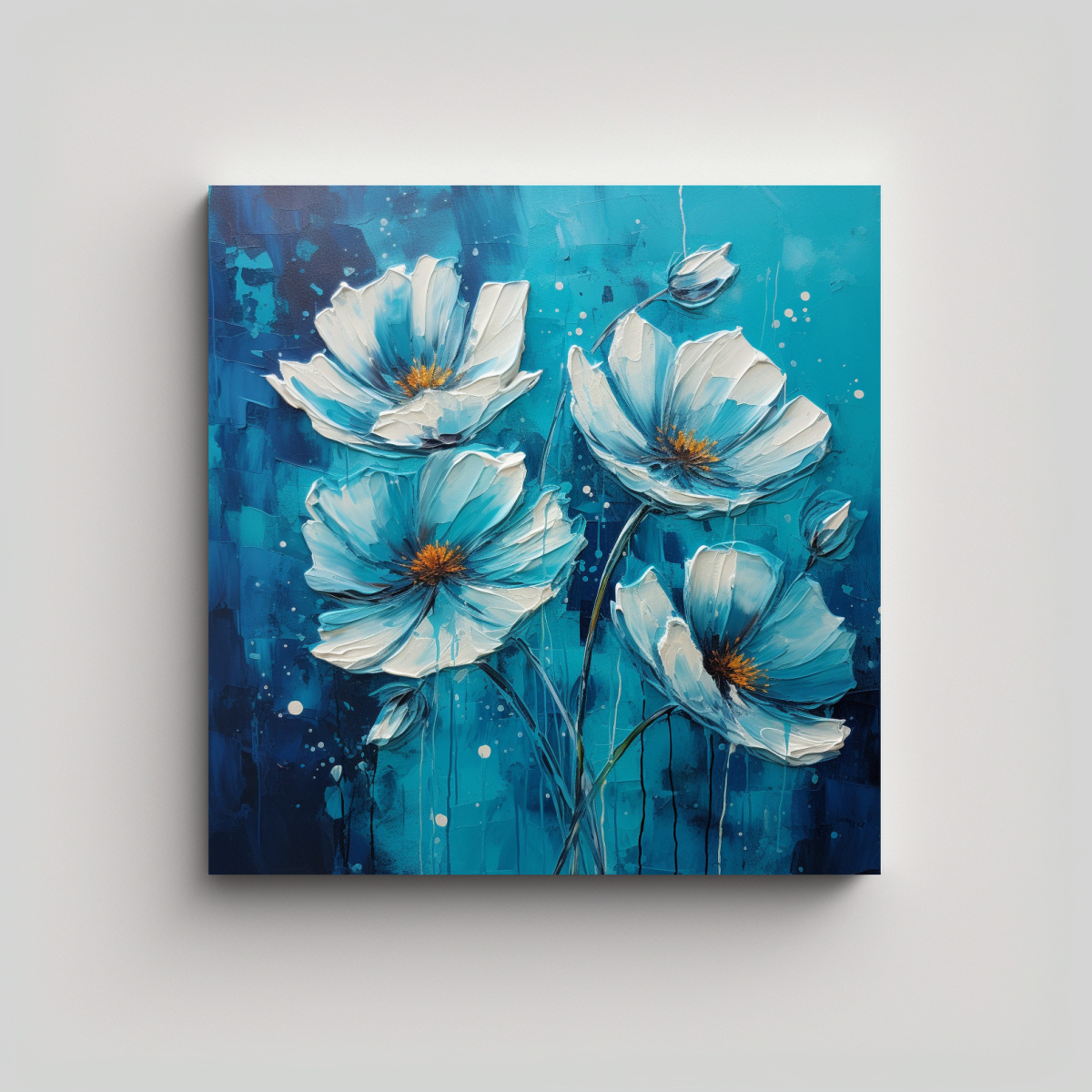 Pintura Creativa De Flores En Colores Turquesa En Lienzo En Estilo De Arte Fina