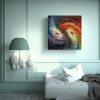 Este cuadro de dos galaxias chocando es perfecto para decorar tu sala de estar Combínalo con muebles en tonos plateados, grises y azules oscuros para crear un ambiente moderno y sofisticado Colócalo sobre un sofá de color neutro y añade cojines en tonos similares para completar la decoración