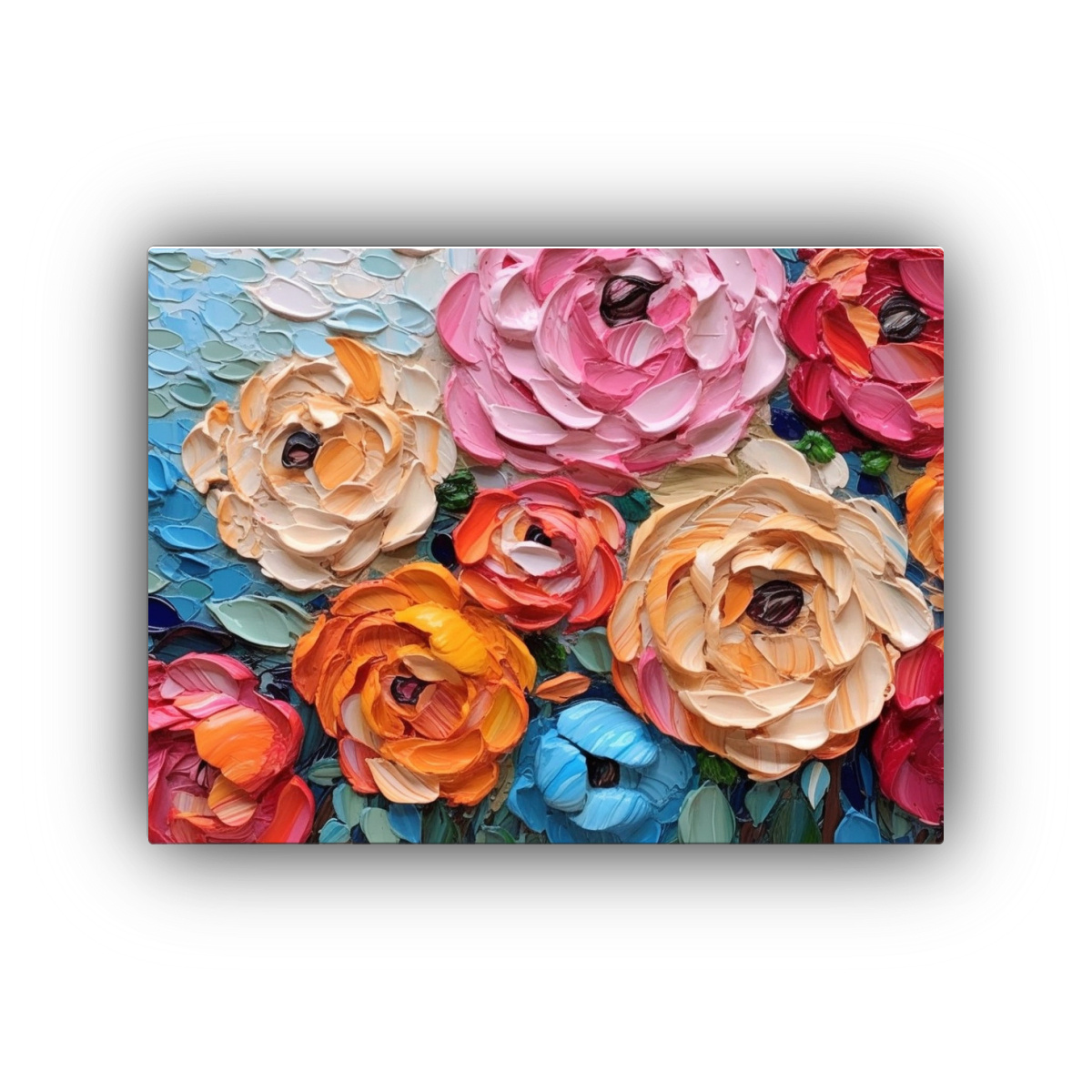 Pintura Cuadro Conceptual De Peonías Coloridas Y Gruesas.