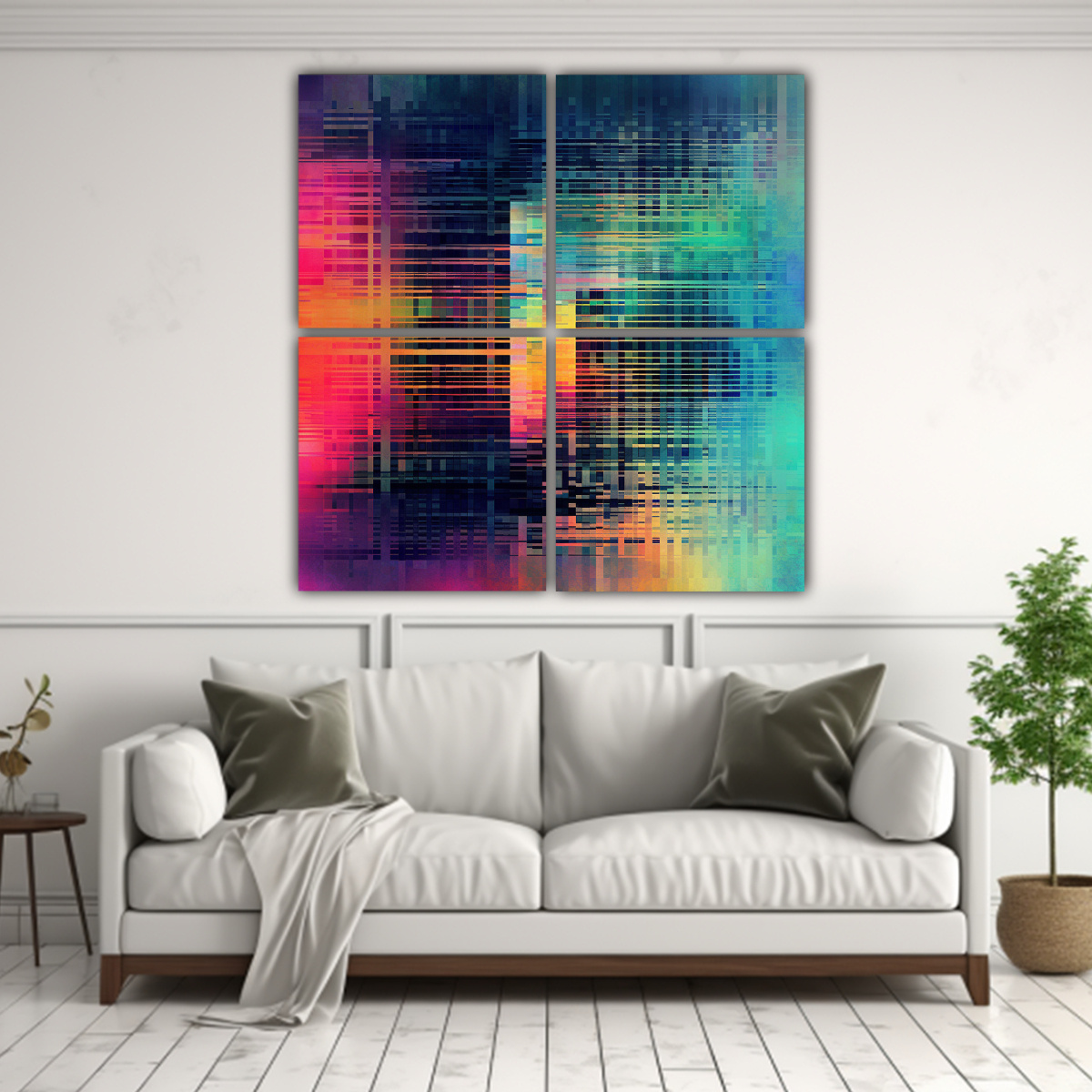 Pintura Cuatro Canvas Abstracción Para Sala: Rectángulo Escalado Por Secuencia De Fibonacci