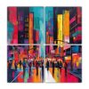 Pintura Cuatro Lienzos Imagen Modernidad 85, Escena Otoñal Con Hojas Cayendo