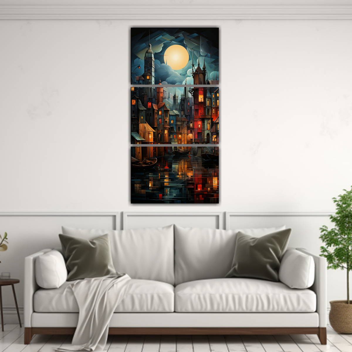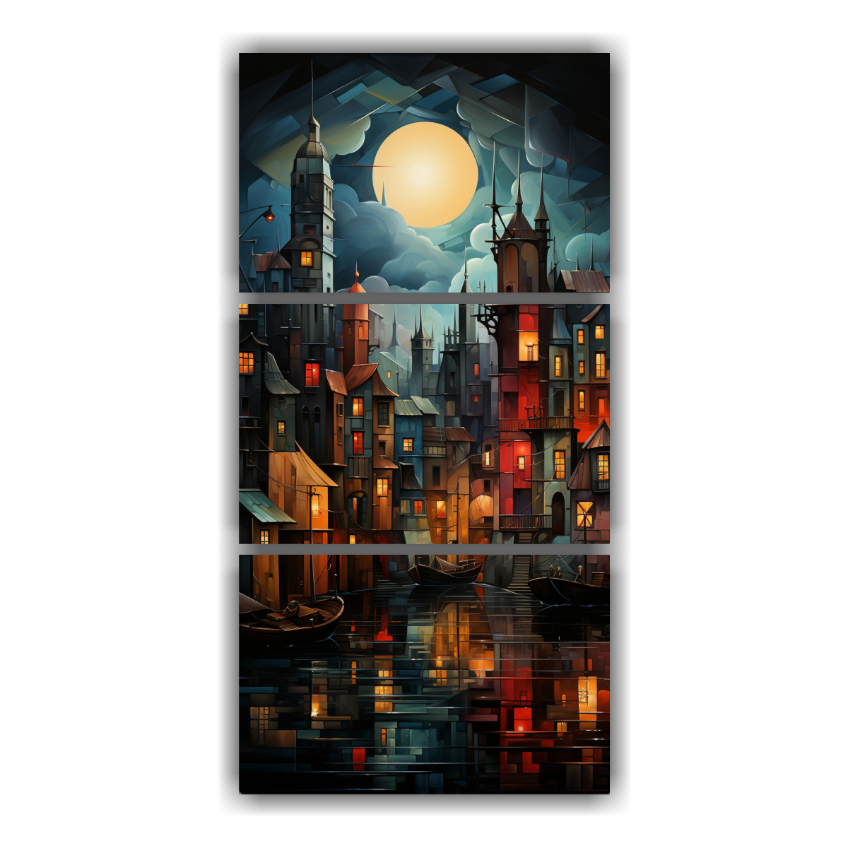 Impresión de alta calidad en tela con bastidor de madera Añade a tu hogar un toque moderno con este cuadro cubista Perfecto para salas de estar, oficinas o dormitorios Eleva la decoración con este paisaje urbano en tonos elegantes