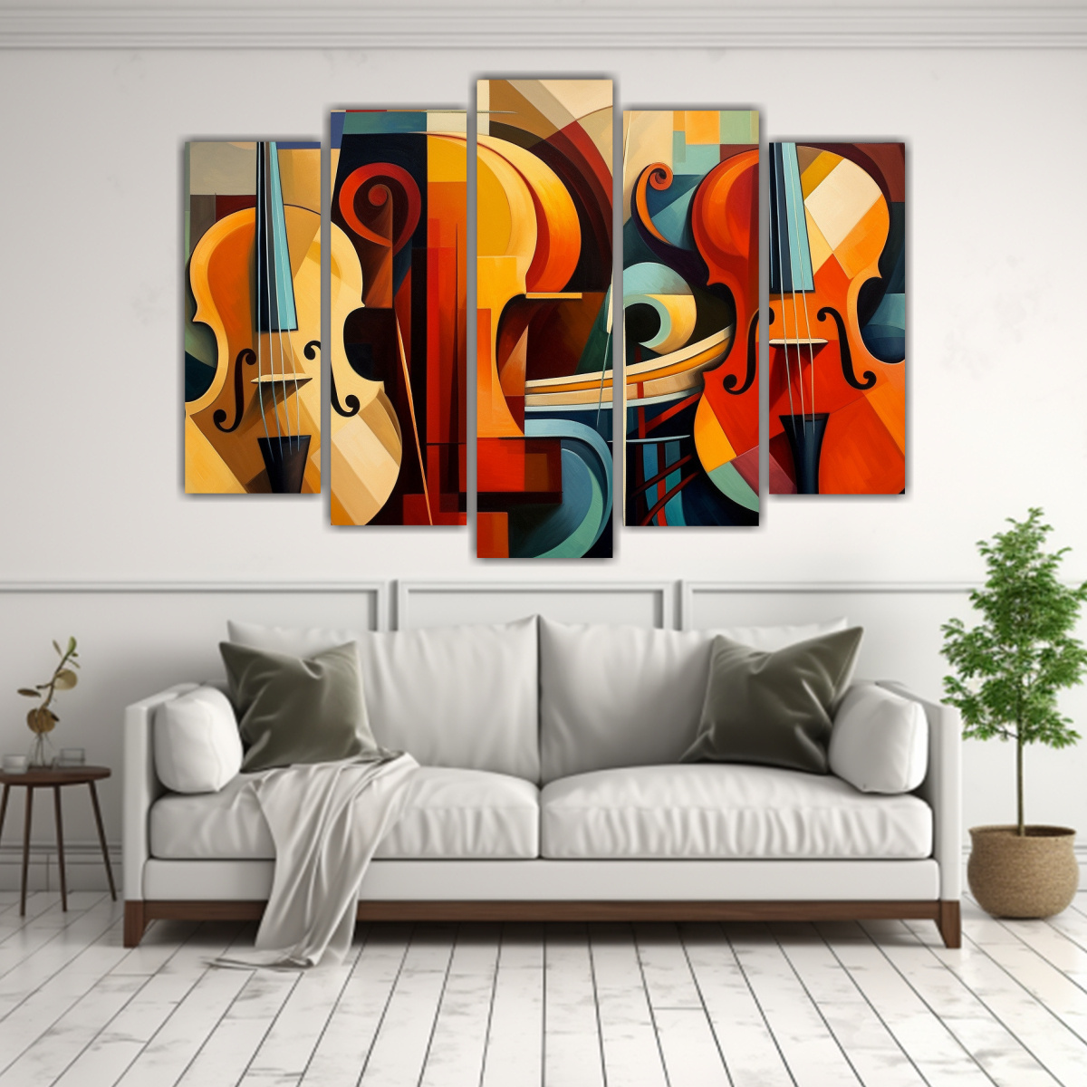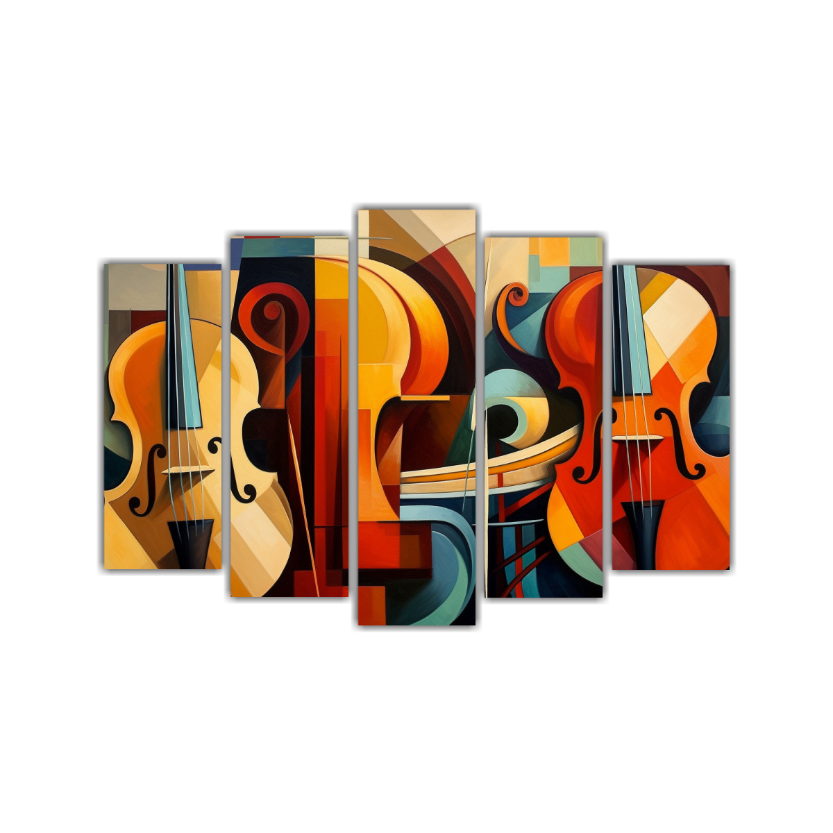 Pintura Cubista De Violines, Viola Y Violonchelo Para Decoración