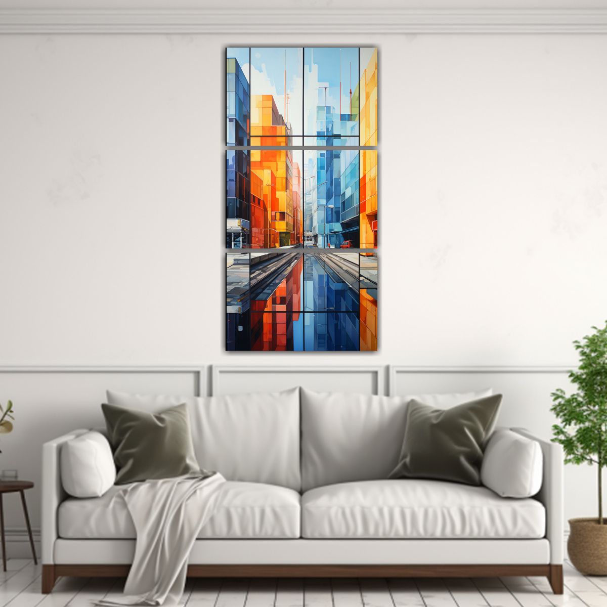 Pintura Cubista Impresa Alta Resolución Ciudad Fragmentada