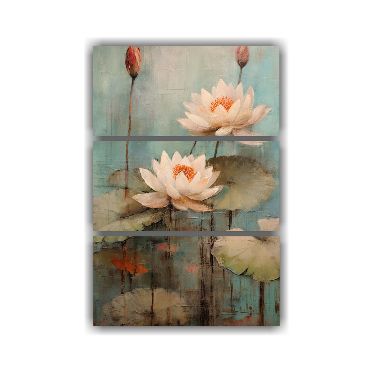 Pintura De Aceite De Flores De Loto Rojas Hermosas En Decoración De Pared Arte Vanguardista