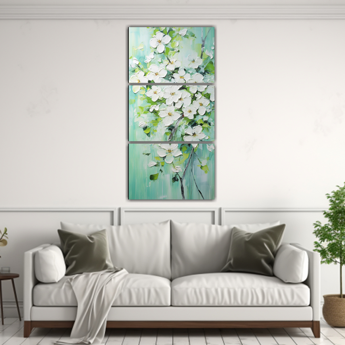 Coloca este cuadro de cerezos verdes en lienzo en tu sala de estar para crear un ambiente fresco y relajante Combínalo con muebles de tonos neutros y detalles en verde para lograr una decoración armoniosa ¡Atrévete a darle un toque de naturaleza a tu hogar con esta pieza única!