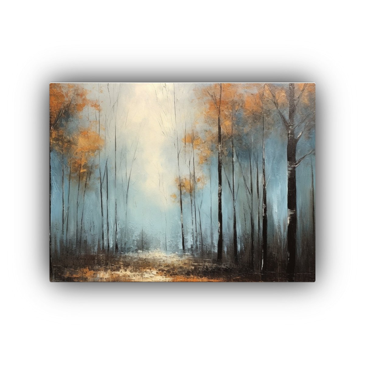 Este cuadro de árboles con hojas otoñales encajará perfectamente en la sala de estar sobre un sofá de color neutro, creando un ambiente cálido y acogedor Complementa la decoración con cojines en tonos tierra y una manta suave para lograr un espacio armonioso