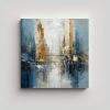 Este cuadro de árboles en abstracción digital sería ideal para colocar en la sala de estar sobre un mueble de color blanco para resaltar sus tonos Gris, Azul Marino y Dorado Combinado con cojines en tonos Beige y Menta, lograrás una decoración sofisticada y armoniosa