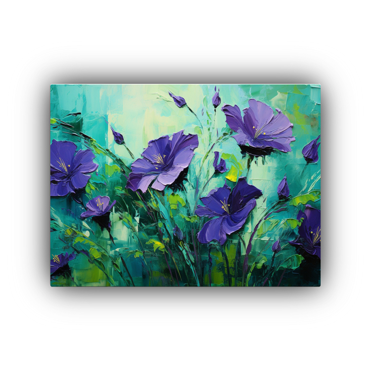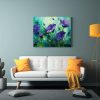 Pintura De Arte Callejero Espectacular En Verde Y Púrpura Flores Sobre Lienzo.