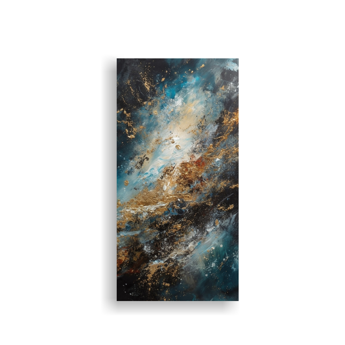 Pintura De Arte De Pared Abstracto Estético Con Flakes Dorados Y Plateados Galaxia Vía Láctea.