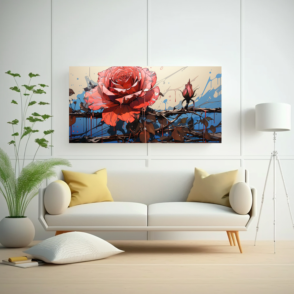Pintura De Arte De Pared Modernos Duradero Con Goteo En Un Dibujo De Rosa