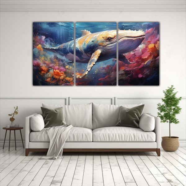 Este cuadro de la Ballena Gris en Acuarelas Coloridas se vería perfecto en la sala de estar sobre un sofá de color neutro, aportando un toque de color y vida al ambiente Combínalo con cojines en tonos azules y grises para lograr una decoración armoniosa y elegante