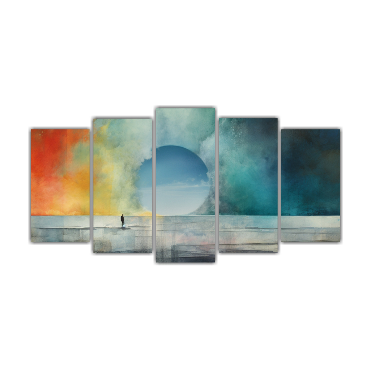 Pintura De Belleza En Bastidor Con Cinco Telas En Colores Del Arcoíris Teal Y Plateado
