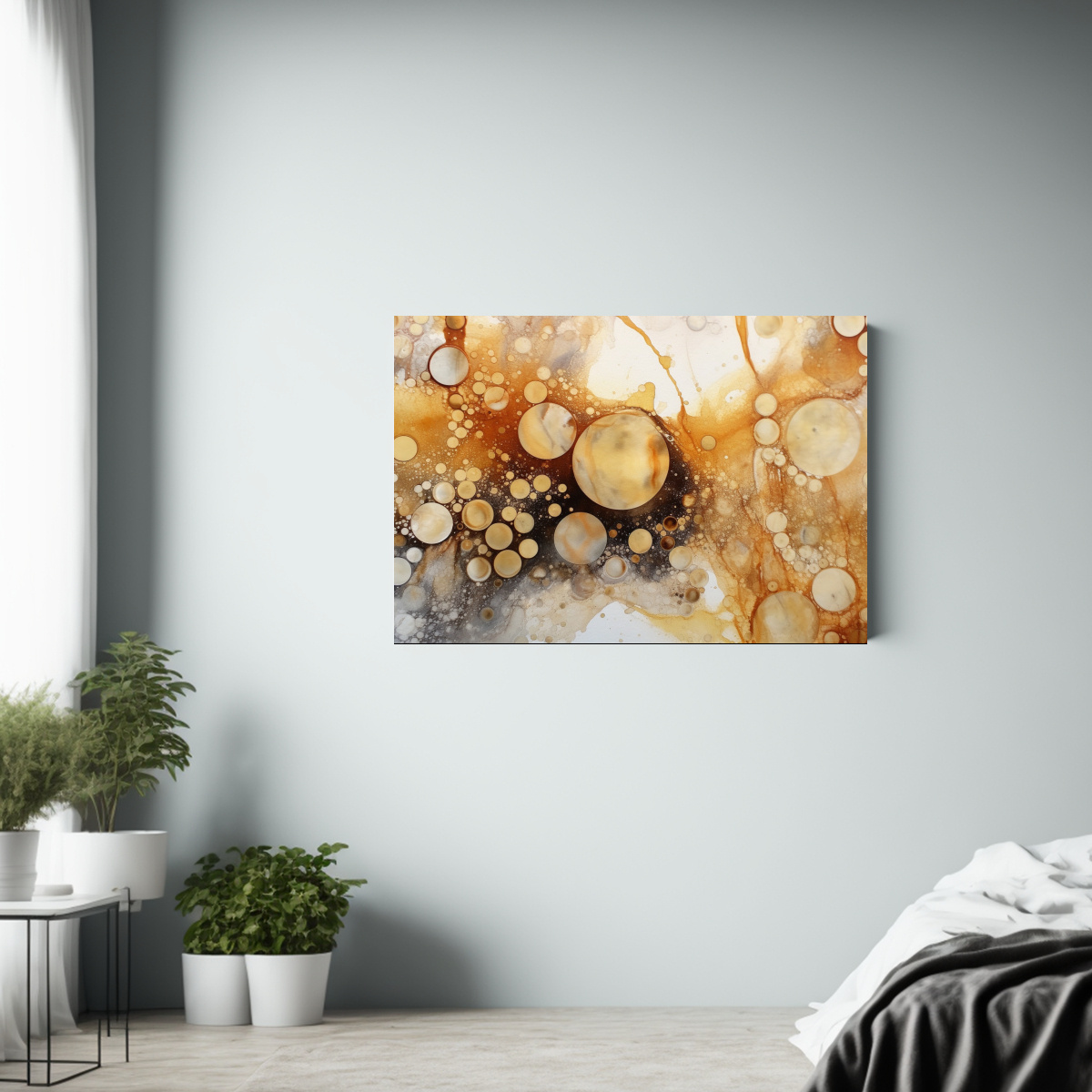 Pintura De Café, Leche Y Burbujas Doradas Estilo Arte De Pared